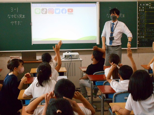 インターネットを使ったコミュニケーショントラブルを防止するための方策が必要と考えており、学校では、情報モラルに関する学習等を進めています。先生たちが考えた方法で道徳の時間に授業をしたり、ヒューリアみえの安田先生に出前授業をしていただいたり、先生たちの研修会で話し合ったりして、取組を進めています。