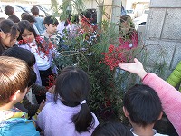 どもたちに門松の意味について話