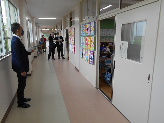 今日は、四日市市教育委員会教育監をはじめとして、指導課長等、事務局職員の方々8名が来校され、子どもたちの様子等を見ていただきました。子どもたちが落ち着いて学んでいる様子に、感心されていました。