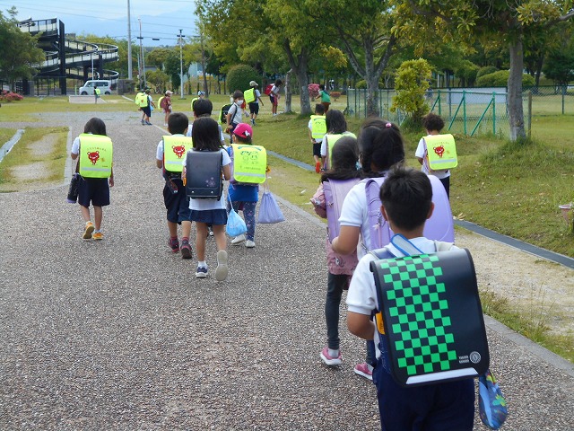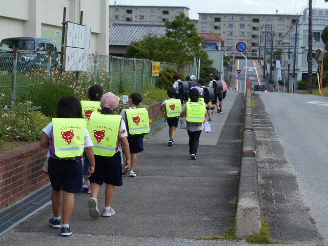 また、集団登校、できるだけ複数での下校に取り組んでおり、加えて、地域の「こどもみまもりたい」の皆様が、登下校を見守ってくれています。
