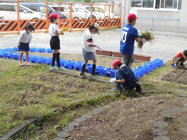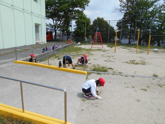 今日は、みんなで、学校敷地内の草取りをしました。あちらこちらで、一生懸命に草を取って集めている子どもたちの姿が見られ、きれいにしてくれました。本校には、清掃活動や奉仕活動に一生懸命取り組める子どもたちがたくさんいます。
