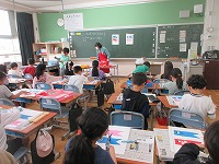 2年生の図工の時間には、画用紙でこいのぼりを作っていました。こいのぼりの模様を自分の好きな形に切ったり、貼り方を工夫したりしながら楽しそうに取り組んでいました。少し風でなびいているように傾けてこいのぼりを貼っている子もいました。最近、こいのぼりが泳いでいる姿を町の中で見かけることが少なくなりましたが、自分で作ったこいのぼりが、元気に泳ぐといいですね。