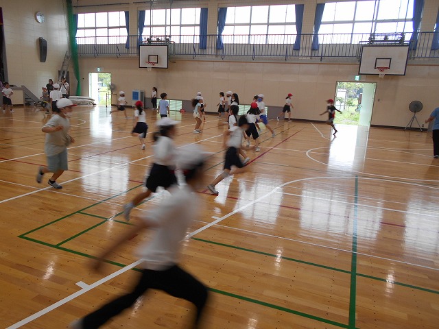 今日の4限目は、雨の勢いが強かったため、残念でしたが、プールを中止し、体育館で体育の授業を行いました。