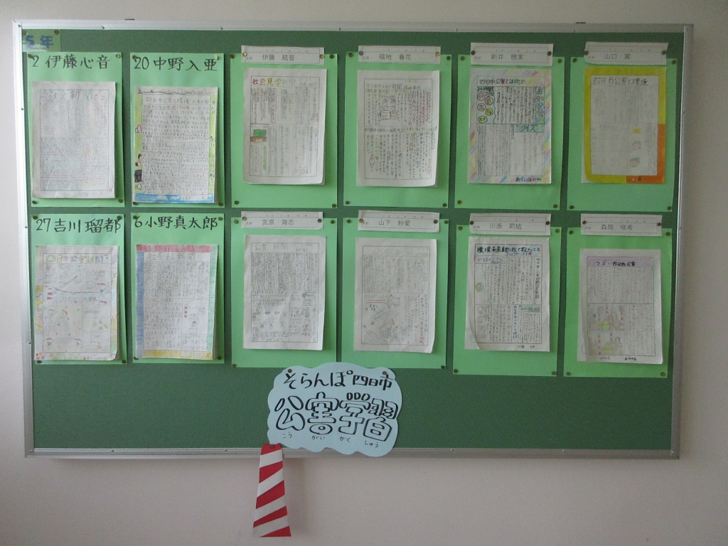 校内には、いろいろな場所に掲示板があります。各学年の掲示板には、子どもたちの素敵な作品が掲示されています。学校へ来ていただいた際は、ぜひご覧ください。