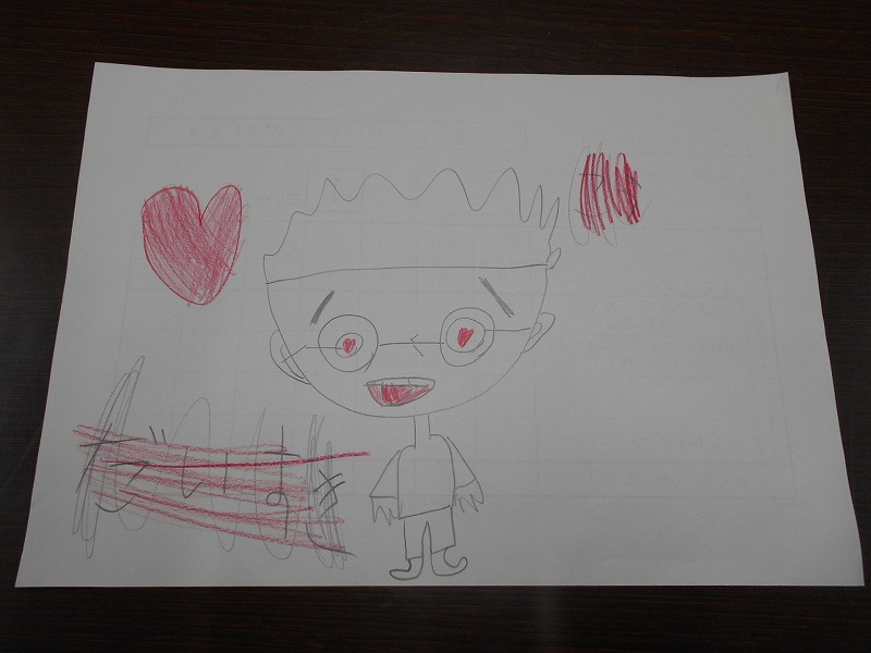 このプレゼントは、校長室に貼って毎日眺めていますが、この絵を見ていると、子どもたちの気持ちに応えたい、子どもたちのためにもっとがんばりたい、子どもたちのことをもっと大事にしたいという気持ちが高まり、元気の源になっています。