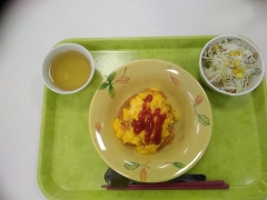 すべての活動が終わり、今から食堂でお昼ご飯です。メニューは、オムライスです