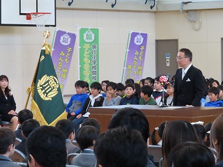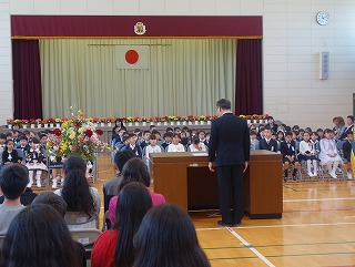 開校式・始業式の後、入学式を行いました。笹川小学校開校後の初めての入学生を迎えました。