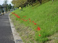 学校の東法面にヒガンバナが咲