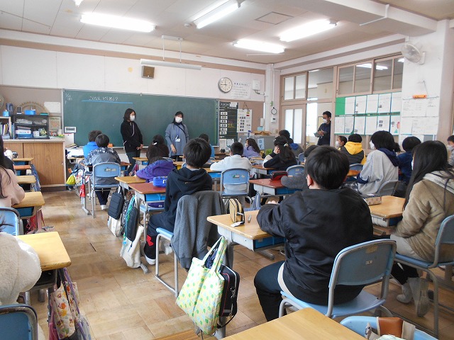 この日は、5年生の先生から道徳の授業観察・指導の依頼がありましたので、参観しました。二人の先生による寸劇をもとに、互いの言葉がわからない場合のコミュニケーションでは、すごく大きな声を出すことや、早口、舌打ちは良い印象を与えないこと、話す時の表情が大切であること等を話し合っていました。子どもたちは、良いコミュニケーションについてしっかり考えて発言することができており、とても感心しました。