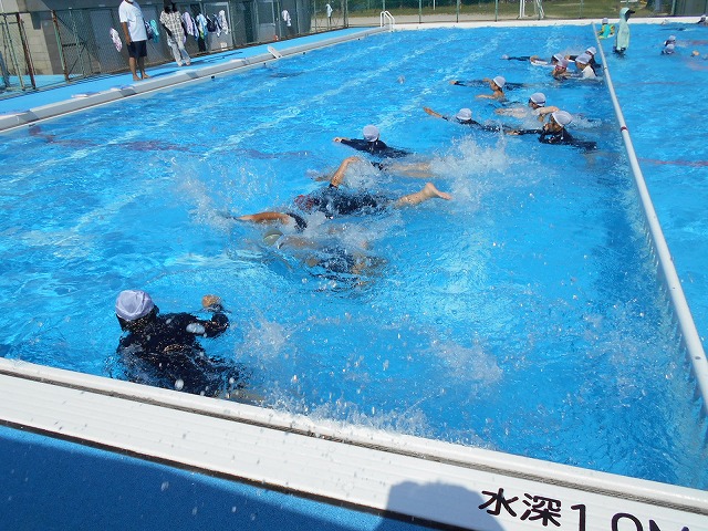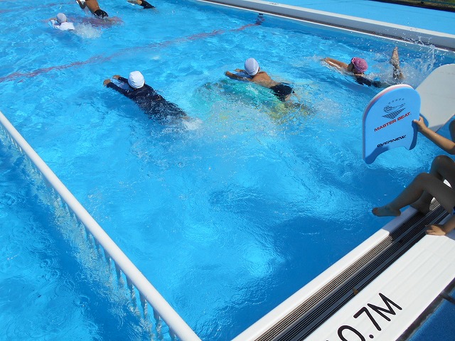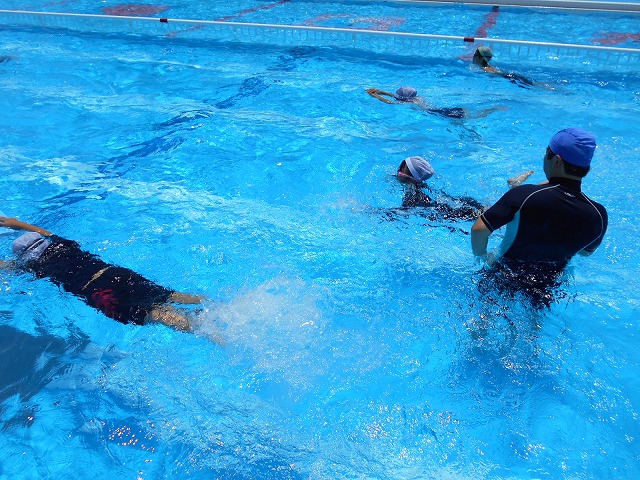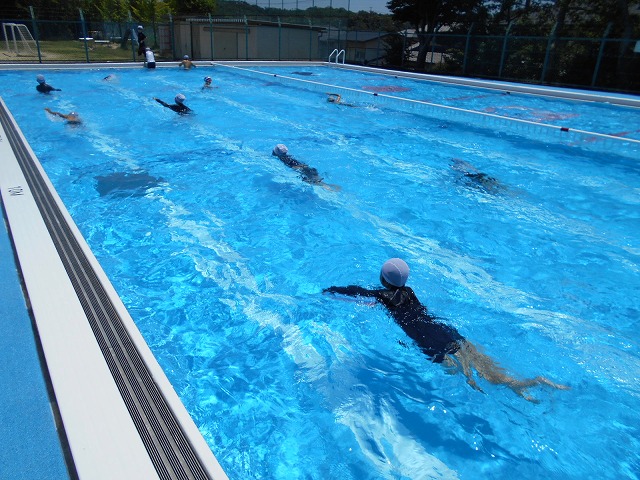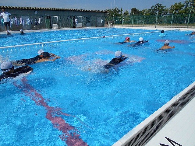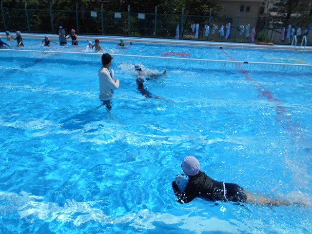 プールでは、「気持ちがいい」「楽しい」などの声とともに、子どもたちの笑顔をたくさん見ることができます。水の中は気持ちがいいと思うのですが、外はかなり暑かったため、今日の午後の見学児童は、プールサイドのテント内ではなく、校長室等や保健室で過ごしました。