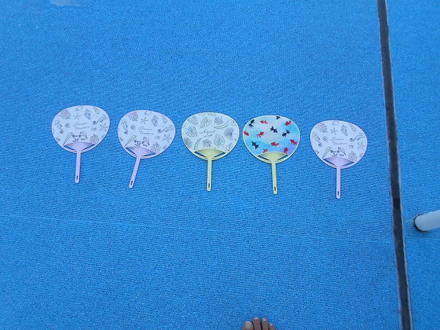 見学児童のために、水で濡らして使用するうちわを購入しました。