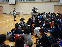 *雨のため、体育館で出発式です。
