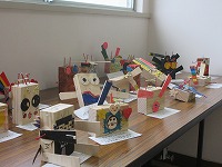 3年生は、釘打ちトントンの作品です。釘の打ち方を工夫したり、釘を打つ場所を考えたりしながら作品づくりに取り組んでいました。子どもたちの思いが詰まった作品が出来上がりました。