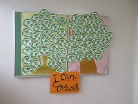 5年生は、英語の時間に学習した「I can ~」の文型を使って、自分を紹介する文を作りました。「I can play the piano. I can speak English. I can run fast.」などその子の好きなこと得意なことが発見できます。