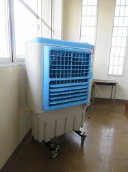 先日、熱中症対策第2弾として、「日本総合設備」様より、大型冷風機1台と扇風機3台を寄贈いただきました。今回は、空調設備がない理科室や家庭科室などに利用させていただきます。ありがとうございました。