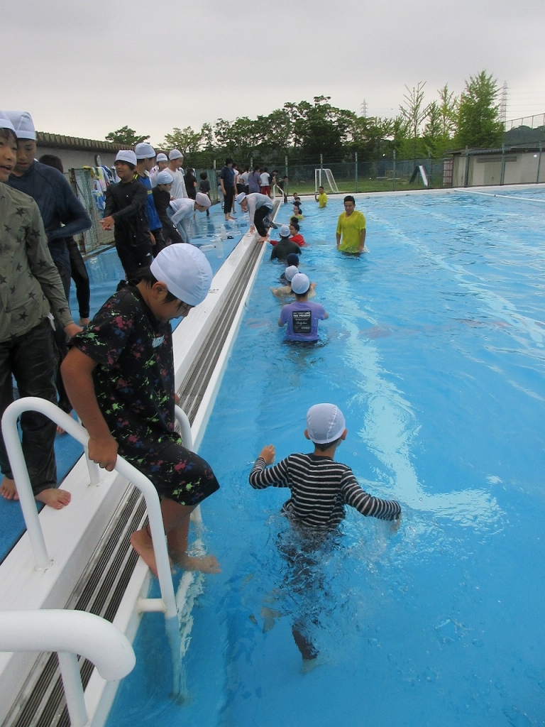 5・6年生を対象に着衣水泳を行いました。服を着たまま水に入った瞬間、子どもたちは「気持ち悪い、変な感じ」といつもとは違う不思議な感覚だったようです。