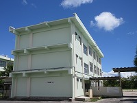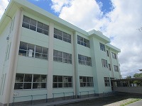 夏休み前から南校舎の塗装工事の準備が始まり、本日、無事作業が終了しました。北校舎・中校舎と同じ色(うすい緑色)で塗装してもらいました。