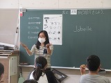 ALTのジョベル先生の自己紹介を聞きました。「I'm from America. Ⅰlike English.」
