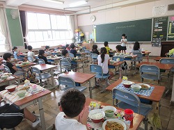 今日で一学期最後の給食となりました。今年は新型コロナウイルス感染防止のための休校もあり、給食の回数もいつもより少なくなってしまいました。今までのように楽しくおしゃべりしながら給食を食べることも難しい状況でしたが、子どもたちは給食の時間を楽しみにしてくれているようでした。