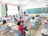 給食当番には手洗いの徹底と健康管理を行い配膳等をしま