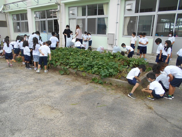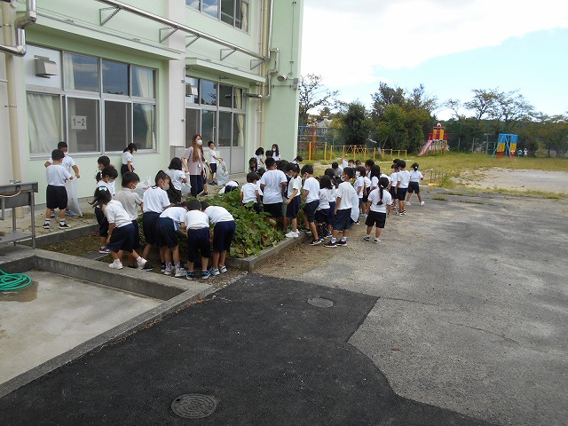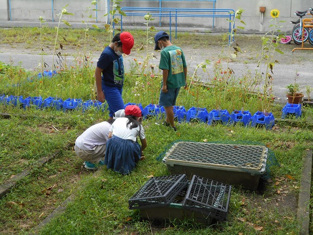 が理科の学習をしていました。「こんなに長い草があったよ」「背中が黄色でしっぽがあって飛んでいる虫がいたよ」など、発見したいろいろなことを教えてくれました。