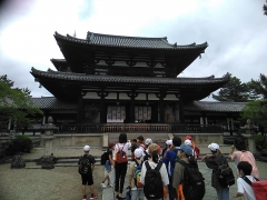 ほぼ時間通りに法隆寺に到着しました。南大門をバックにクラス写真を撮り、五重塔、金堂、大講堂などを見学しました。お昼ご飯にカレーライスを食べて、今から奈良公園へ向かいます。