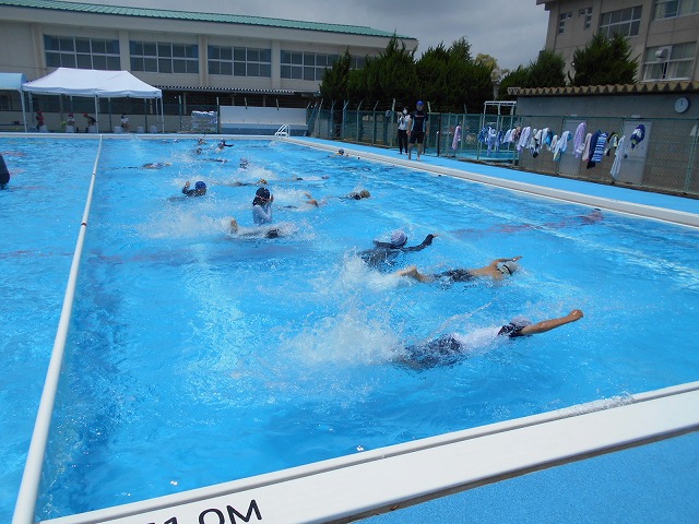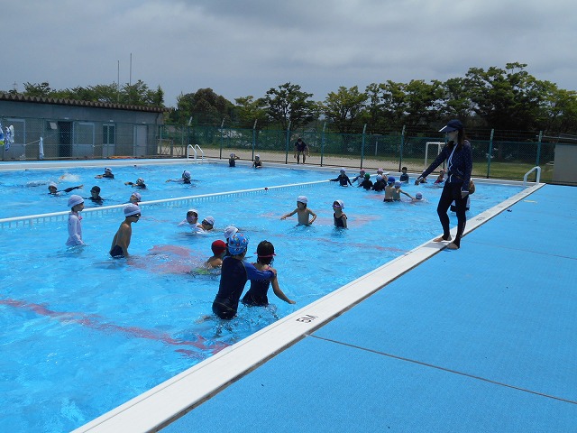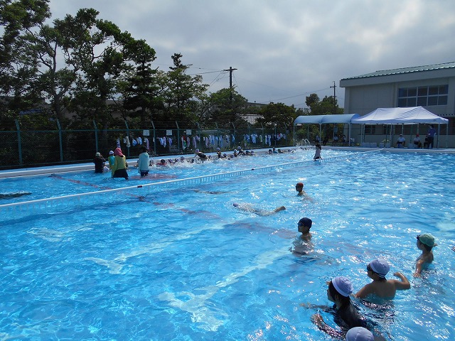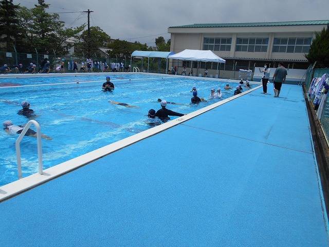 今日は、「めっちゃ気持ちよかったな」「もっと入っていたかったな」「最高やったな」「楽しかったな」などと話しながら歩く子どもたちと、たくさん出会いました。プールに入った直後の子どもたちの様子です。