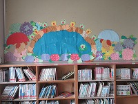 図書ボランティアさんに、図書室と校長室横の掲示物を貼り替えてもらいました。梅雨の季節に入り、雨降りの日が多くなると思いますが、図書ボランティアさんの掲示物をみると、気分が楽しくなります。子どもたちも図書室へ行く楽しみが増えることでしょう。