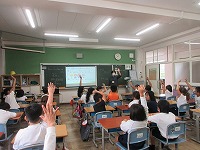 反差別人権研究所みえより「メディアリテラシーと人権」をテーマに、出前授業を行っていただきました。今日の学習のめあては、①人権とは何かを確かめる②インターネットとの正しい付き合い方を学ぶ③自分や友達を大切にする方法を学ぶことがめあてでした。この出前授業は、3年目になり、毎年3年生で実施しています。