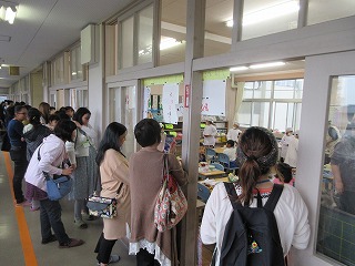 配膳の様子を参観後、給食を食べ