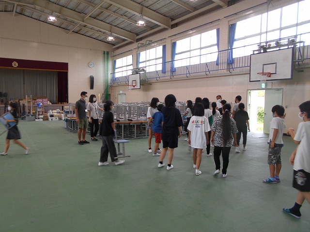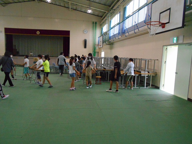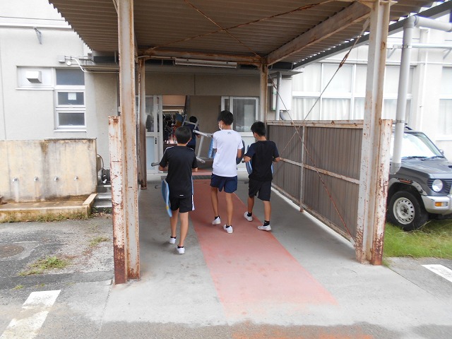 今日は、3年生、5年生、6年生、PTA役員の皆様が、体育館にある椅子等を中校舎の教室に運んでくれました。とても助かりました。