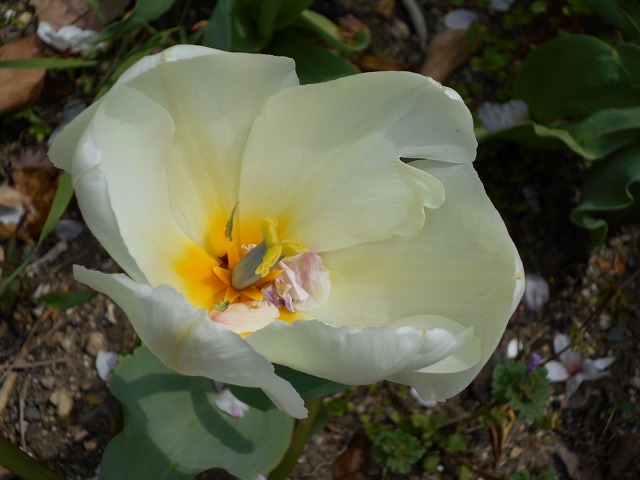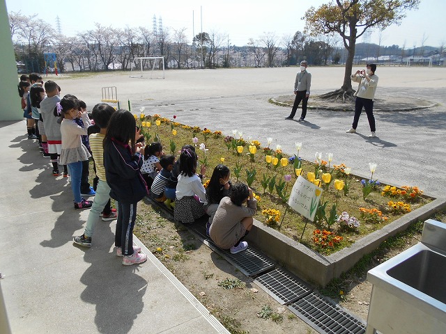 このような日を想定して、昨年度から、職員がチューリップを植えて準備をしていました。