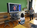 20分休みにこくさいの教室を通ると、電子黒板を通して外国の方と英語で話している5・6年生の子どもたちの姿を見かけました。