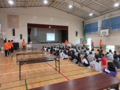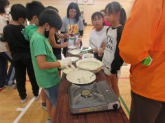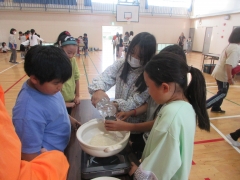 NPO法人みえ減災啓発支援ネットワークの方にお越しいただき、炊き出し訓練を行いました。地震が起こったとき、ライフラインが使えなくなっても対応できるように、地場産業である土鍋を利用して、ご飯の炊き方を教えていただきました。お米と水の割合、カセットコンロの火のつけ方、火加減など、実際に体験しながら学ぶことができました。出来上がったご飯はおにぎりにしていただきました。紙皿にサランラップを敷くことでお皿を汚さずに食べ得られることも学習しました。ご飯が炊けるまでの時間を利用して、地震への備えの大切さなどについてもお話をしていただきました。