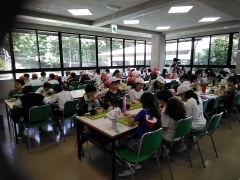 オリエンテーリングが終わり、食堂でお昼ご飯です。メニューは牛丼です。