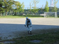 放課後には、地域の方にもお世話になり、機械で草かりをしていただきました。長く伸びていた草は、短くカットしていただくことができ、すっきりしました。