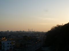 春霞(はるがすみ:大気中(たいきちゅう)の水蒸気(すいじょうき)やホコリ、花粉(かふん)などで白(しろ)っぽくかすむこと。)でしょうか。花粉症(かふんしょう)の人には、つらい時(とき)だと思いますが、集中する時は集中してなんとか乗(の)り切(き)ってほしいと思います。
