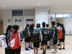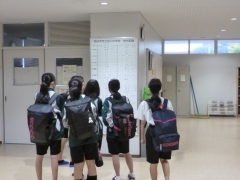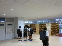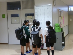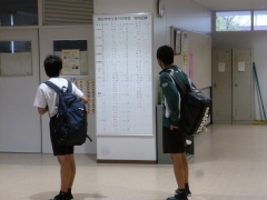 登校後、多くの生徒が立ち止まり、記録ボードを見ていました。