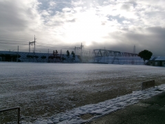 今朝のグラウンドはすっかり雪化粧でした。寒い毎日が続いていますが、1年生は少しずつ自分の進路について
