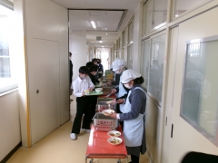 りました。1年生の教室で配膳を終えた生徒数名に「カレー好き?」と尋ねると「好き」との返事でした。何名