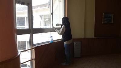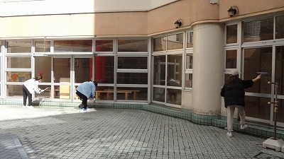 今年度の環境部の皆さんが来校され、環境整備活動をしてくださいました。主に、中庭の窓ガラス、体育館通路の窓ガラス、体育館の掃除をしていただき、とてもきれいになりました!きれいな校舎・体育館で卒業式を迎えられます。