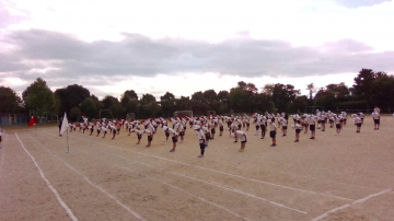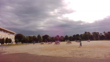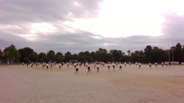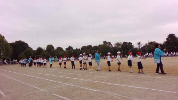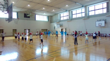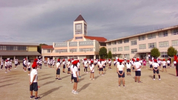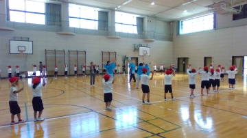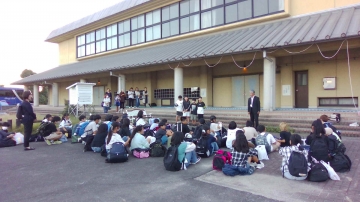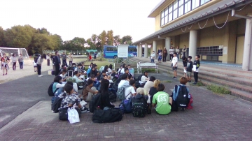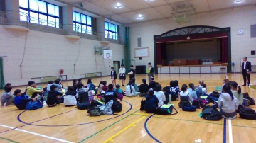 体育館で出発式を行い、全員揃って予定通り出発しました。