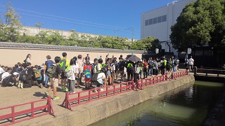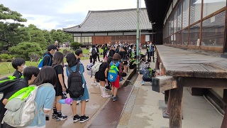 二条城を見学しました。大政奉還の舞台となった大広間を見学したり、鴬張りの仕組みを知るために、床下をのぞきこんだりしていました。外に出るころには、雨もあがっていました。