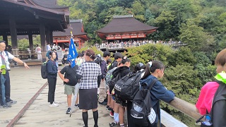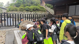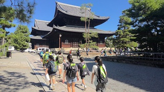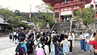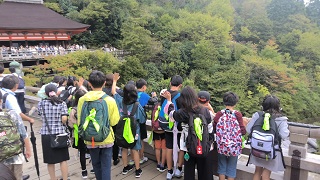 本日最後の見学地、清水寺に到着しました。京都の町並みを眺めたり、清水の舞台から下をのぞいたりしていました。清水坂は、観光客や修学旅行客でにぎやかでした。6年生の子どもたちは、楽しみにしていた買い物に班ごとに出発していきました。