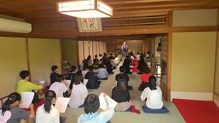 妙心寺退蔵院に到着しました。座禅体験を通して、心を空にすることに挑戦しました。