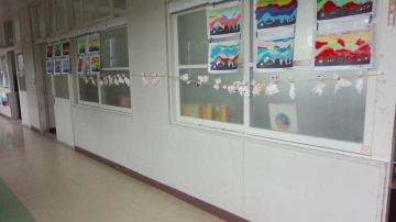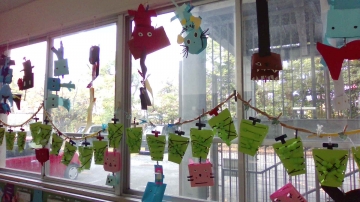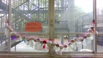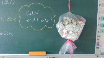 雨が降りませんように、と1年生がてるてる坊主を作りました。