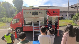 10月29日(木)、塩浜地区防災協議会の方々にお世話になり、3年生が防災教室を行いました。起震車に乗せてもらって、南海トラフ地震で想定されている揺れを体験したり、防災倉庫に備蓄されている物を見せてもらって非常用トイレに座らせてもらったりして防災について学びました。