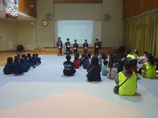 まずは、水沢小学校の発表をクイズを交えて聞きました。