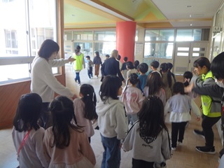 11月28日(金)、磯津保育園、海山道保育園、塩浜こども園から、来年度1年生となる園児に来てもらって交流会を行いました。1年生が園児と手をつなぎながら、「ここが1年生が勉強をしている教室だよ」と校内を案内して回りました。体育館では、ころがしドッジをして一緒に遊び、最後にドングリをきれいに飾ったペンダントをプレゼントしました。1年前の「してもらう立場」から、今度は「してあげる立場」に変わって、1年生がとても頼もしく見えました。園児の皆さんが、喜んでくれているとうれしいです。