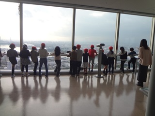 塩浜小学校ならではの水飲み場や展望台の見学をしたりしていました。